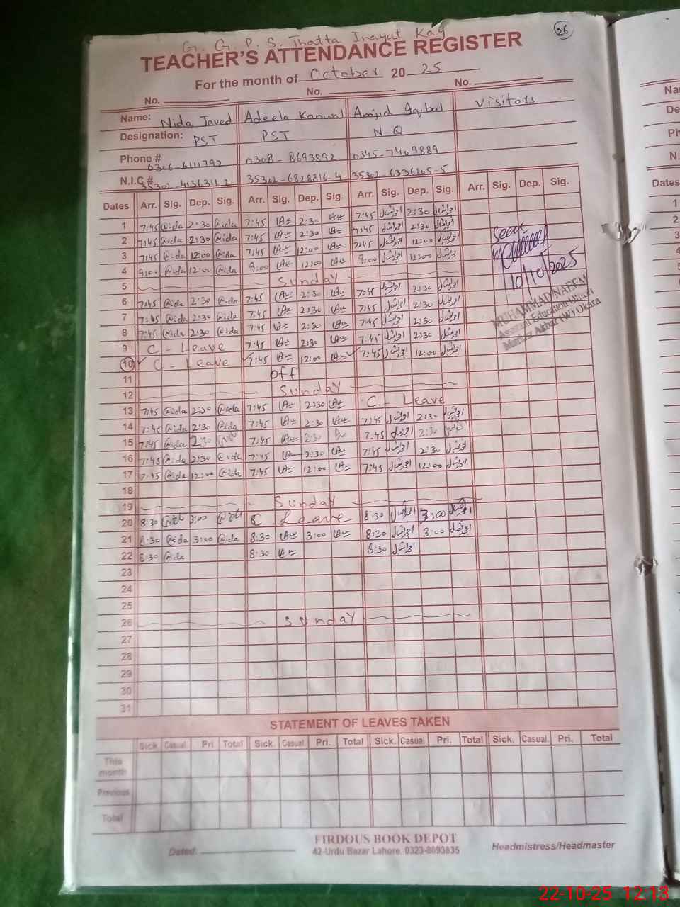 | Name: Ni**** Ja**** Designation: (School Headmaster's/Headmistress's) PST Phone/Cell Number: 03**** |