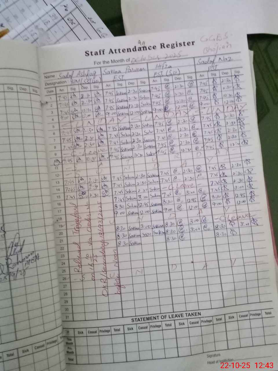 | Leave | Duty | Absent | Maternity | Medical | Ex- Pak |