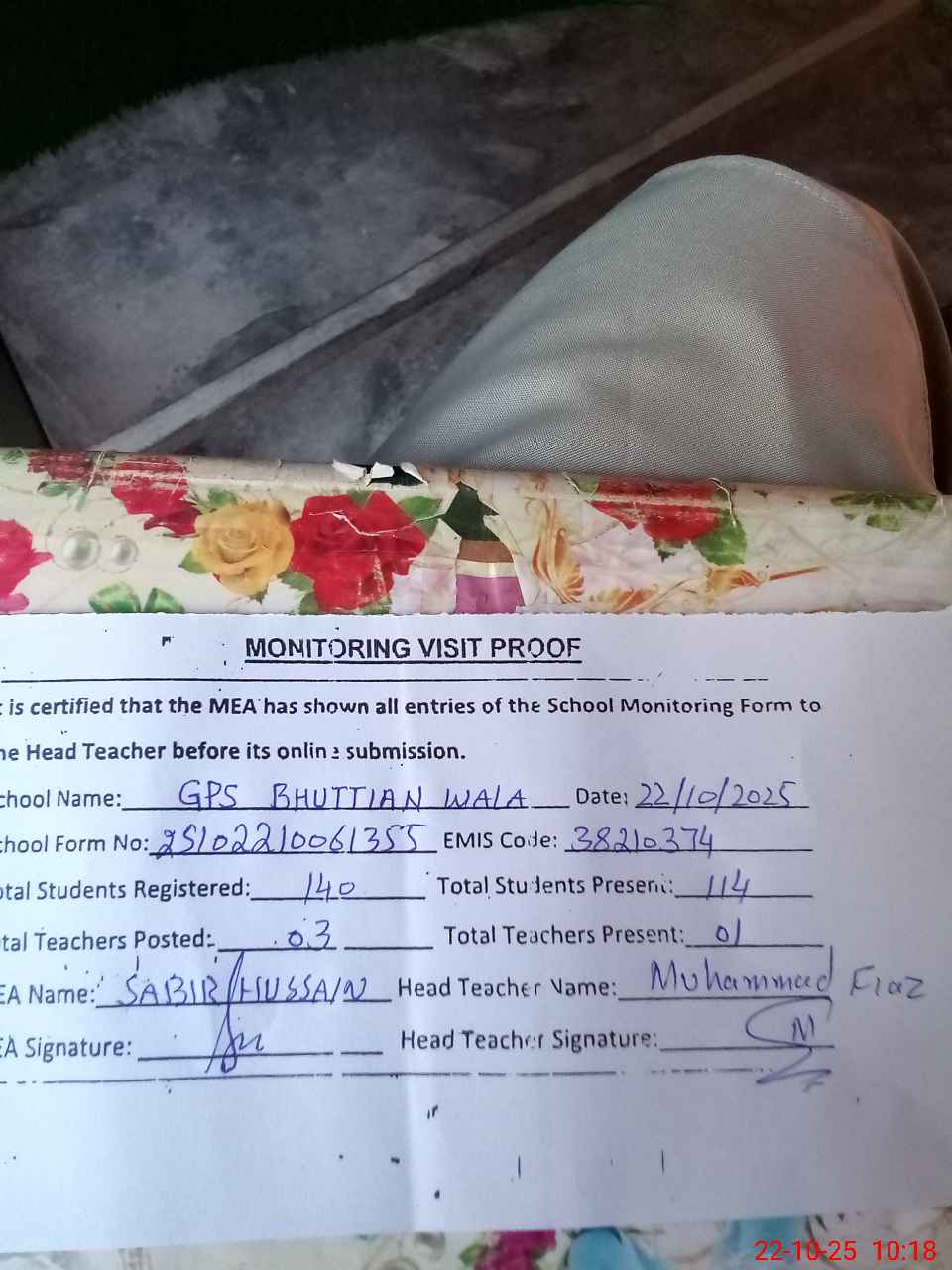 | EMIS Code: 38210374 | Name of School: GPS BHUTTIAN WALA | |||