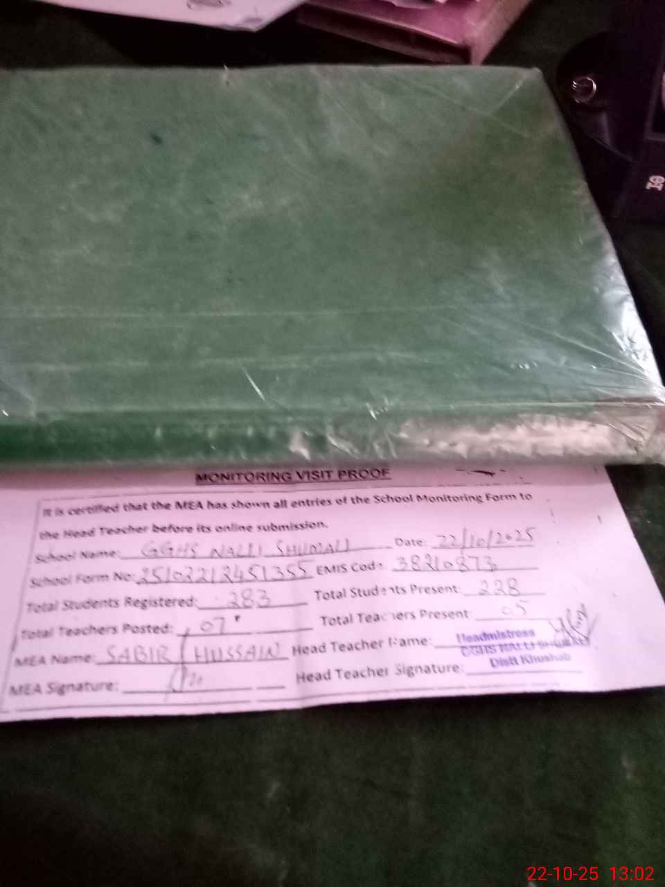 | Attendance Register | Head Teacher | MEA with School | Visit Proof |