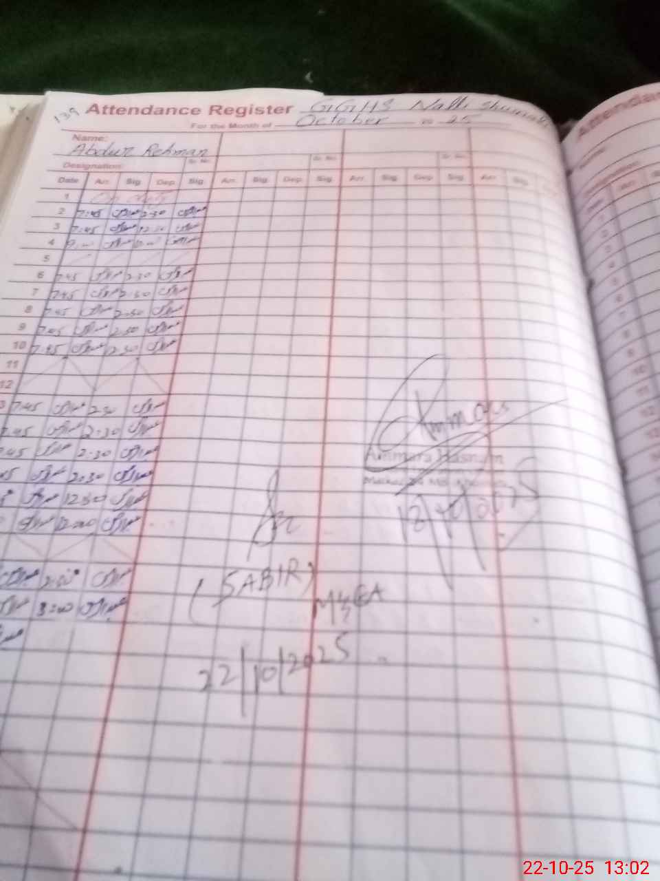 | CNIC | Full Name | Designation | R/C | Absence during last cal. month |