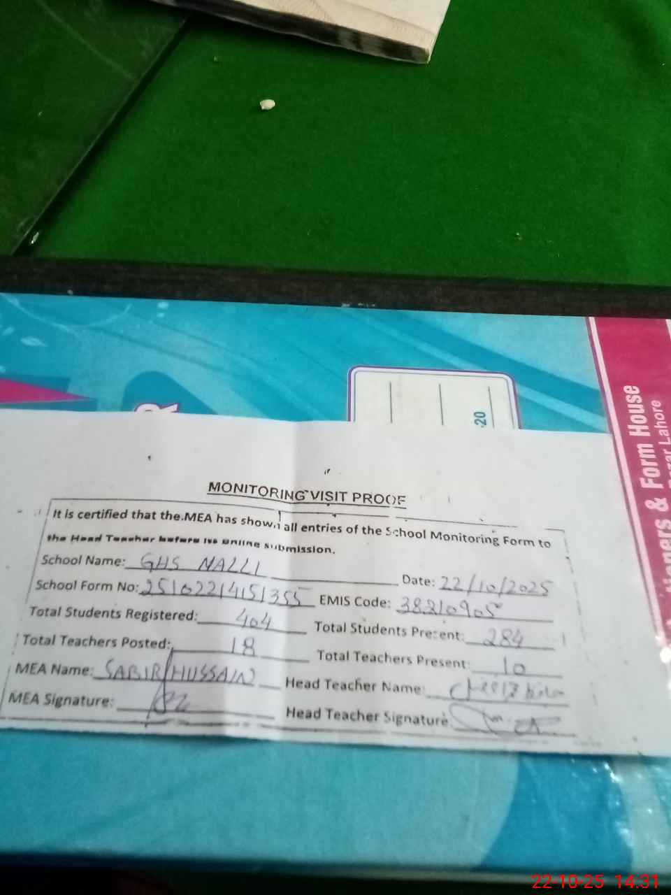 | EMIS Code: 38210905 | Name of School: GHS NALLI | |||