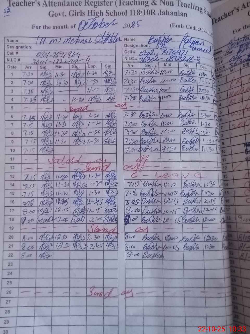 | EMIS Code: 36440133 | Name of School: GGHS 118/10-R, JAHANIAN | |||