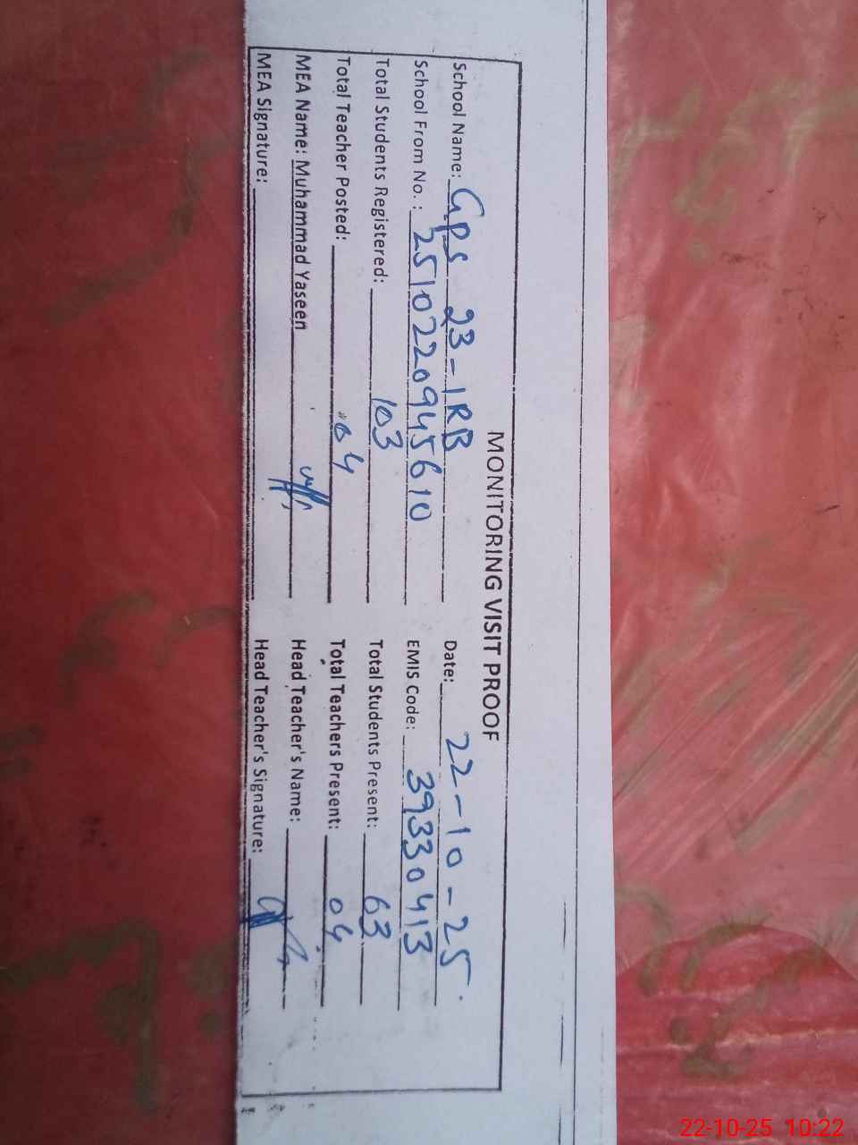 | EMIS Code: 39330413 | Name of School: GPS CHAK NO. 23/1-RB | |||