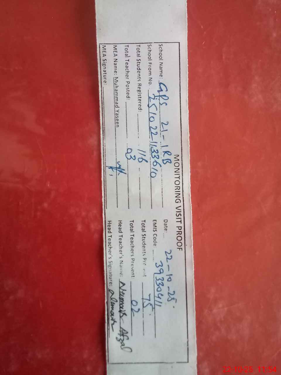 | EMIS Code: 39330411 | Name of School: GPS CHAK NO. 21/1-RB | |||