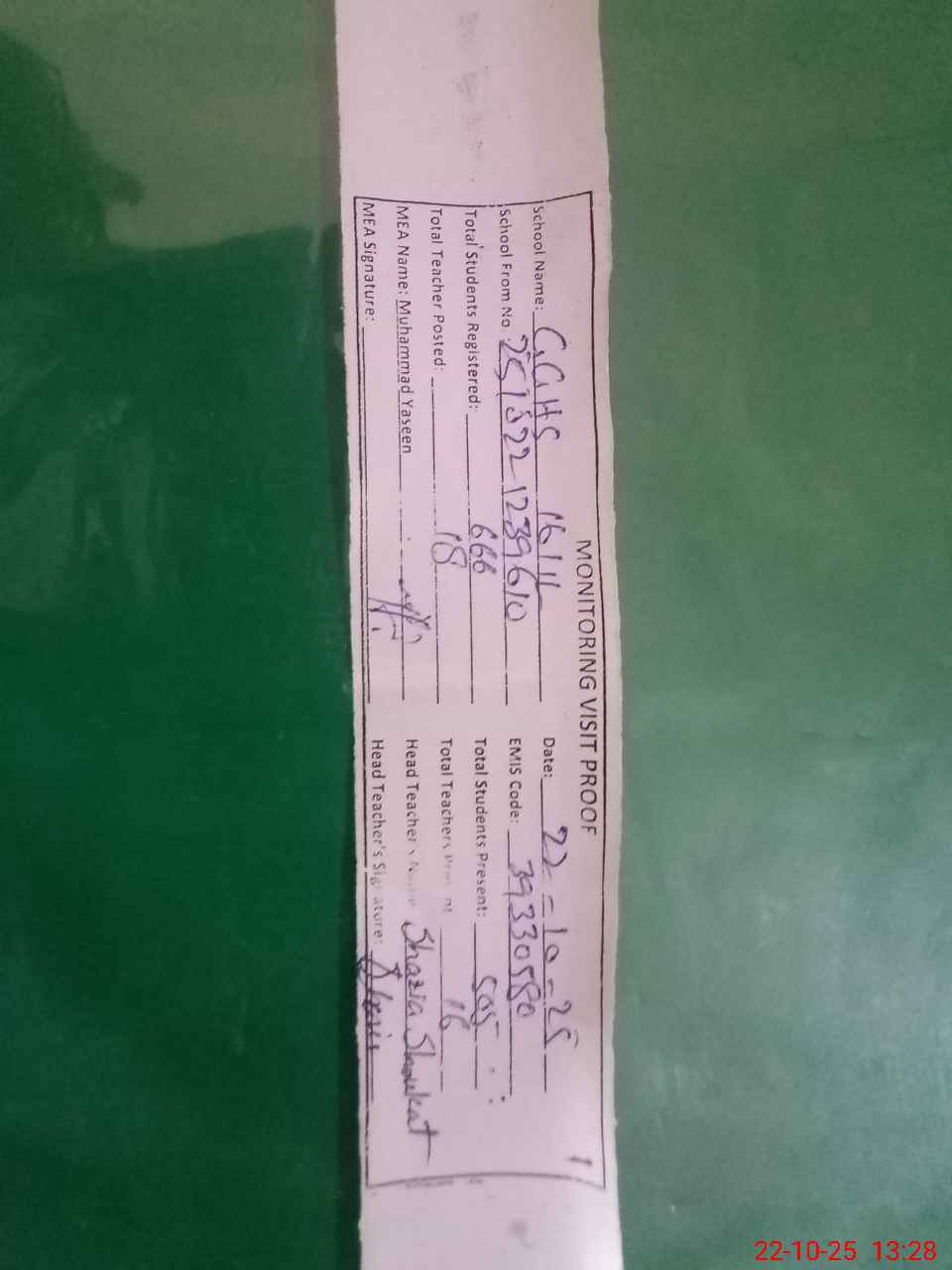 | EMIS Code: 39330580 | Name of School: GGHS 16/1-L | |||