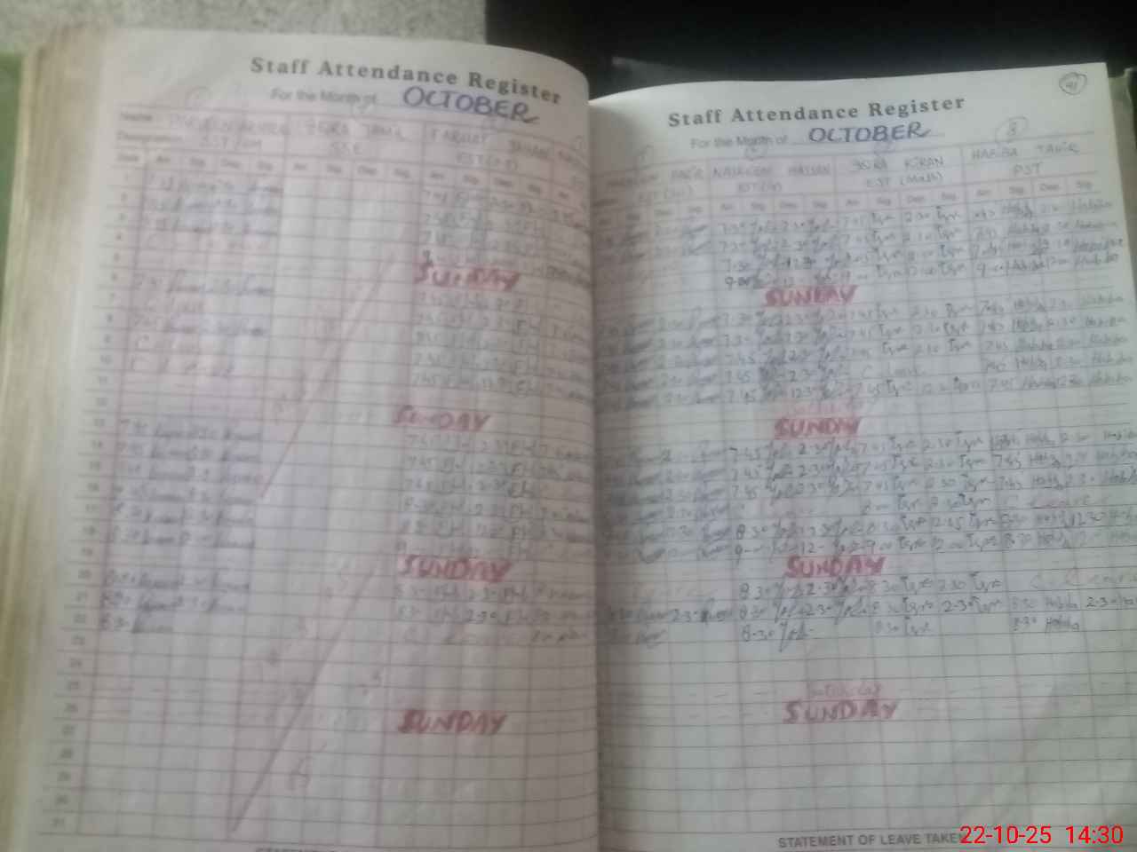 | CNIC | Full Name | Designation | R/C | Absence During Last Calender Month |