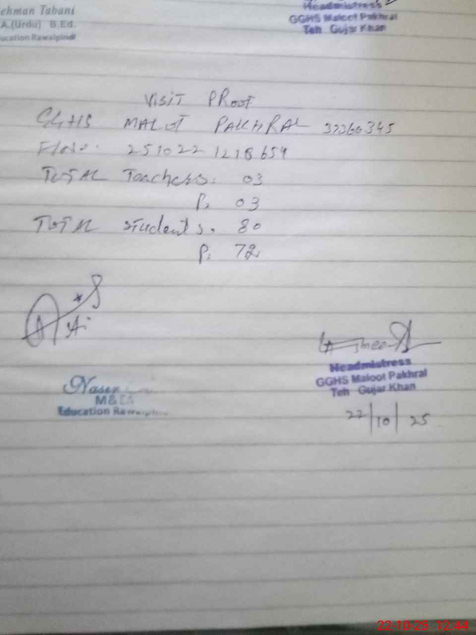 | EMIS Code: 37360345 | Name of School: GGHS MALOOT PAKHRAL | |||