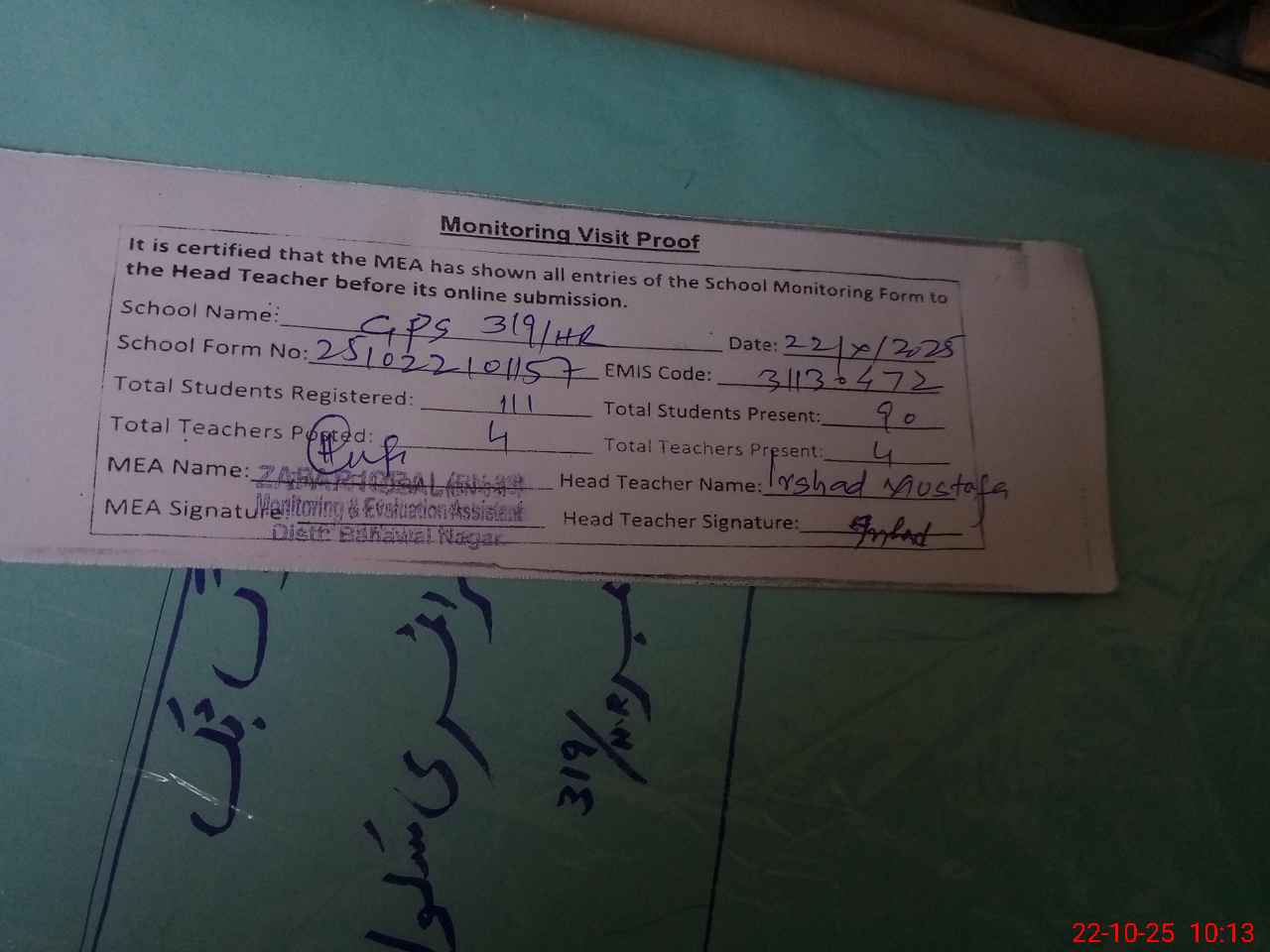 | EMIS Code: 31130472 | Name of School: GPS CHAK NO 319/HR | |||