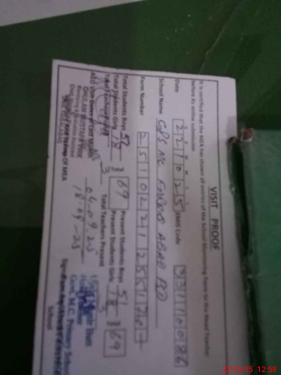| Attendance Register | Head Teacher | MEA with School | Visit Proof |