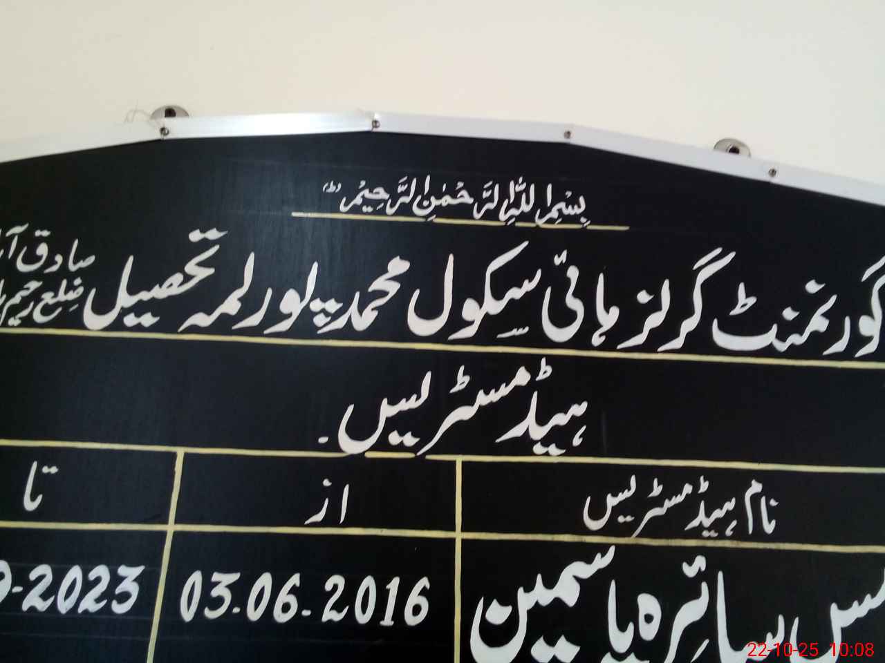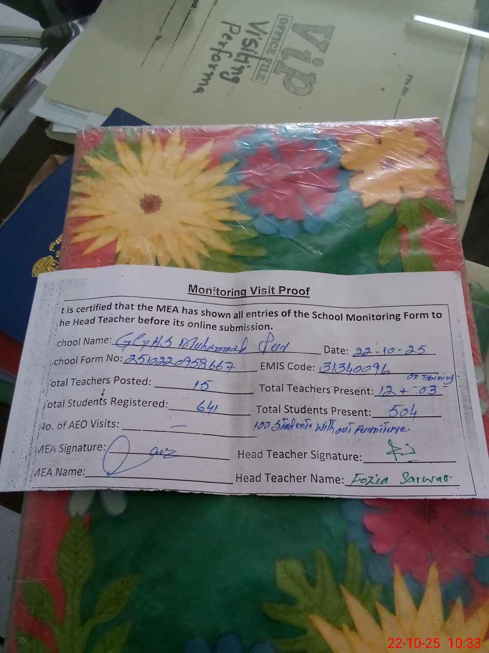 | EMIS Code: 31340096 | Name of School: GGHS MUHAMMAD PUR LAMMA | |||