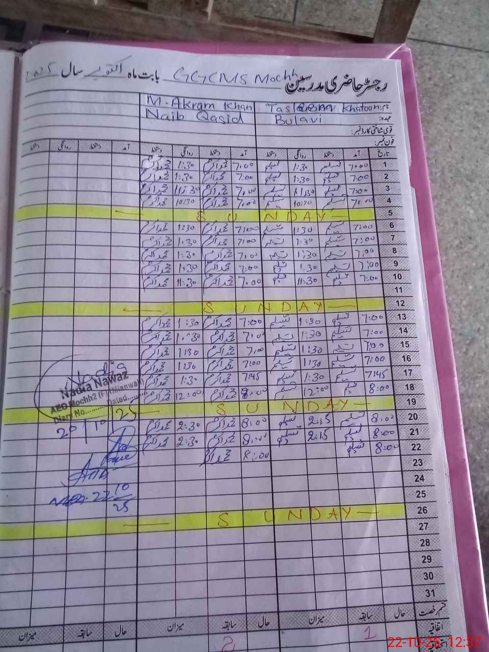 | Name: SH**** BI**** Designation: (School Headmaster's/Headmistress's) PST Phone/Cell Number: 03**** |