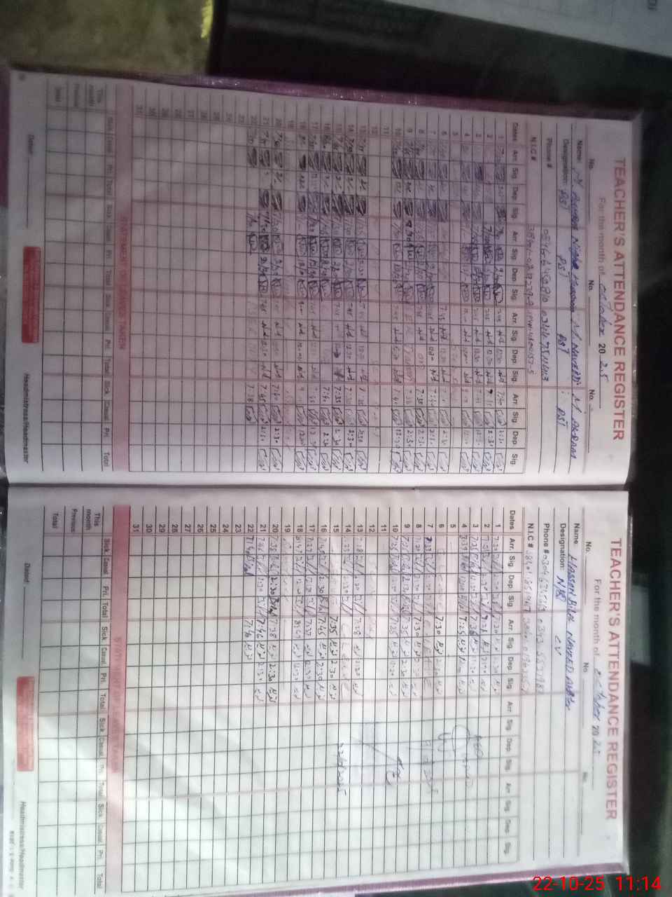 | CNIC | Full Name | Designation | R/C | Absence During Last Calender Month |