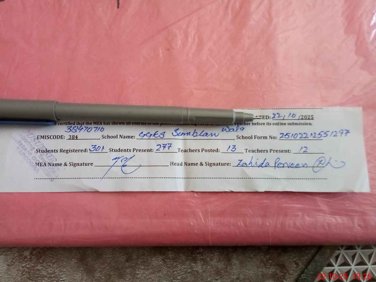 | Name: Za**** Pe**** Designation: (School Headmaster's/Headmistress's) SST Phone/Cell Number: 03**** |
