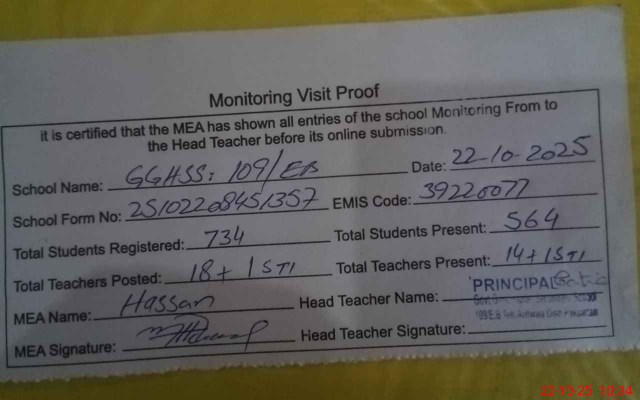 | EMIS Code: 39220077 | Name of School: GGHSS 109 EB | |||