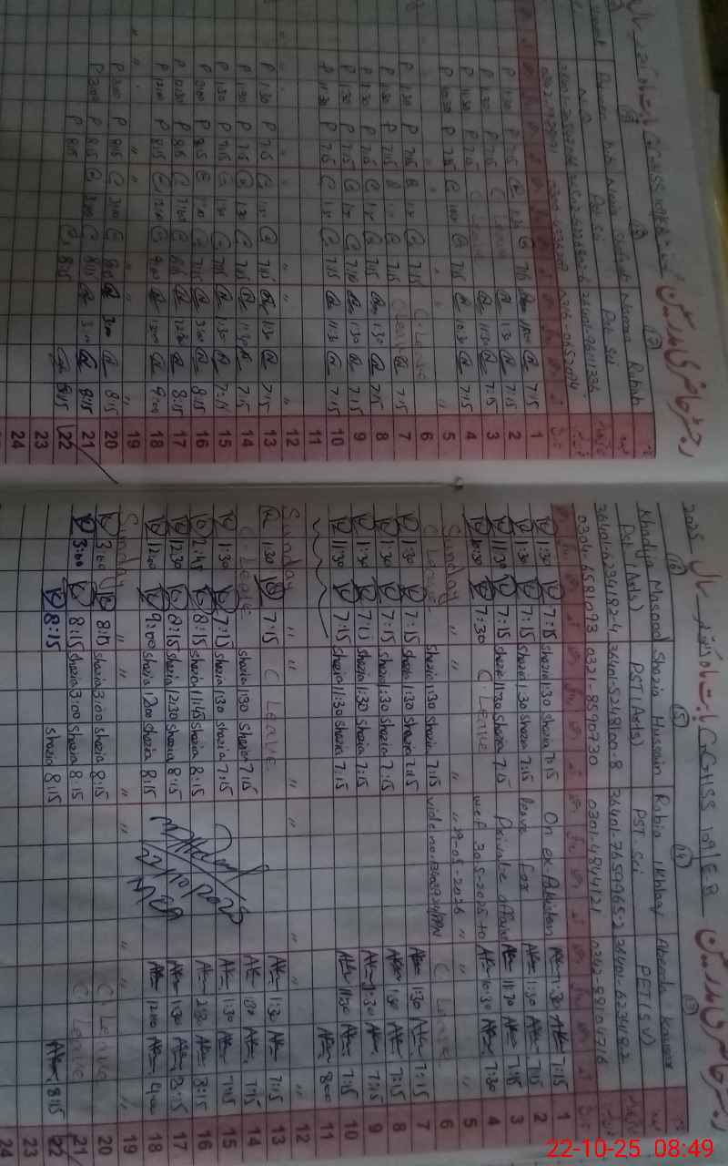 | CNIC | Full Name | Designation | R/C | Absence During Last Calender Month |