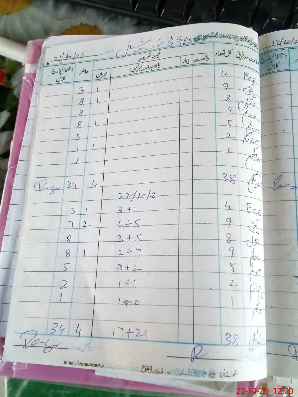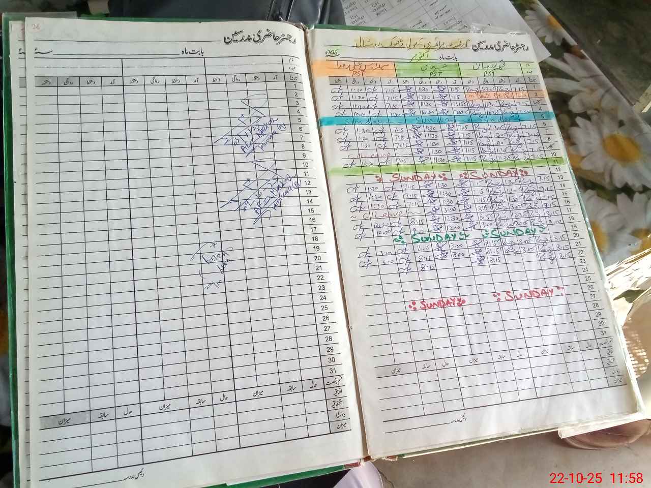 | CNIC | Full Name | Designation | R/C | Absence During Last Calender Month |