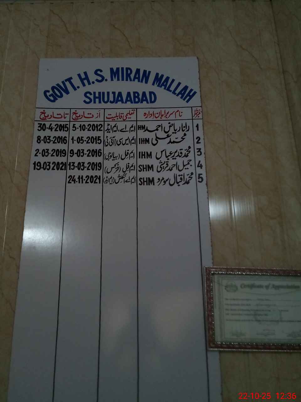 | EMIS Code: 36120013 | Name of School: GHS MIRAN MALLAH SHUJABAD | |||