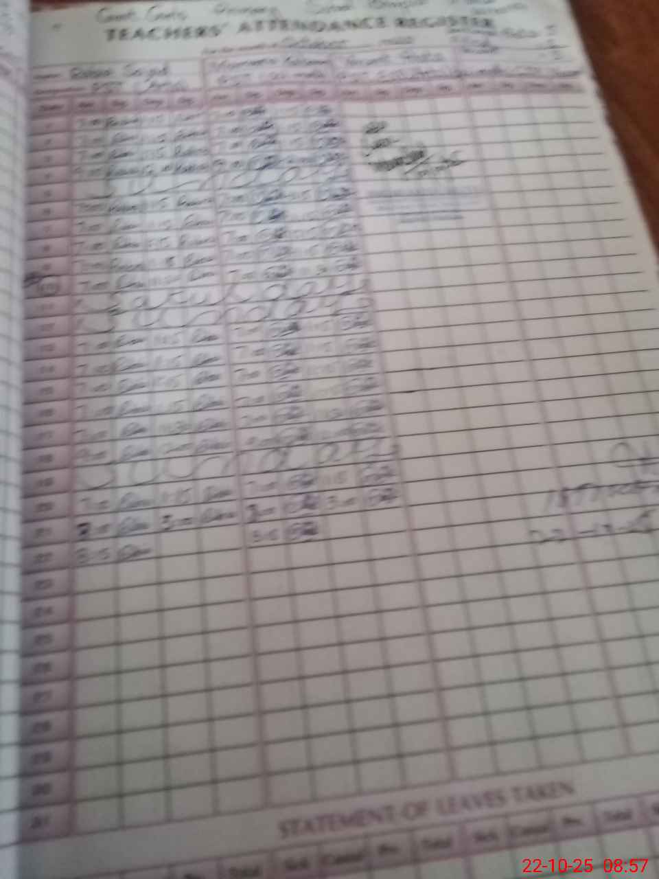 Leave Type | Remarks for Today (Leave,Training, Exam,Absent,Late, Other Duty) |