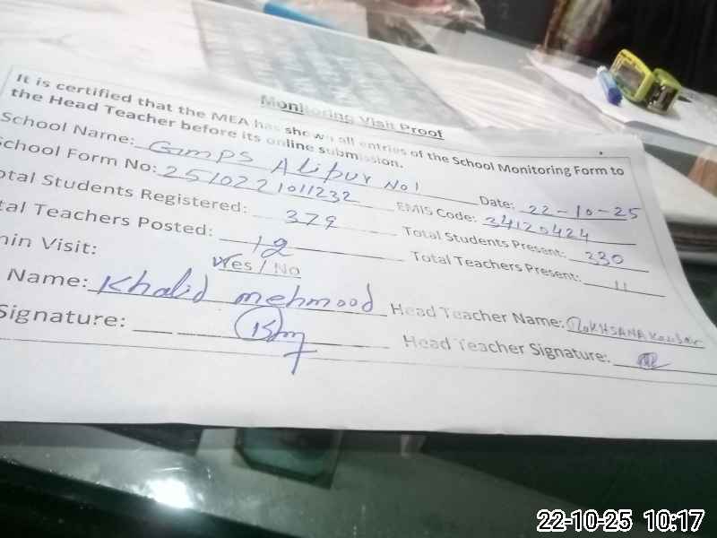 | EMIS Code: 34120424 | Name of School: GMPS ALI PUR CHATHA NO.1 | |||