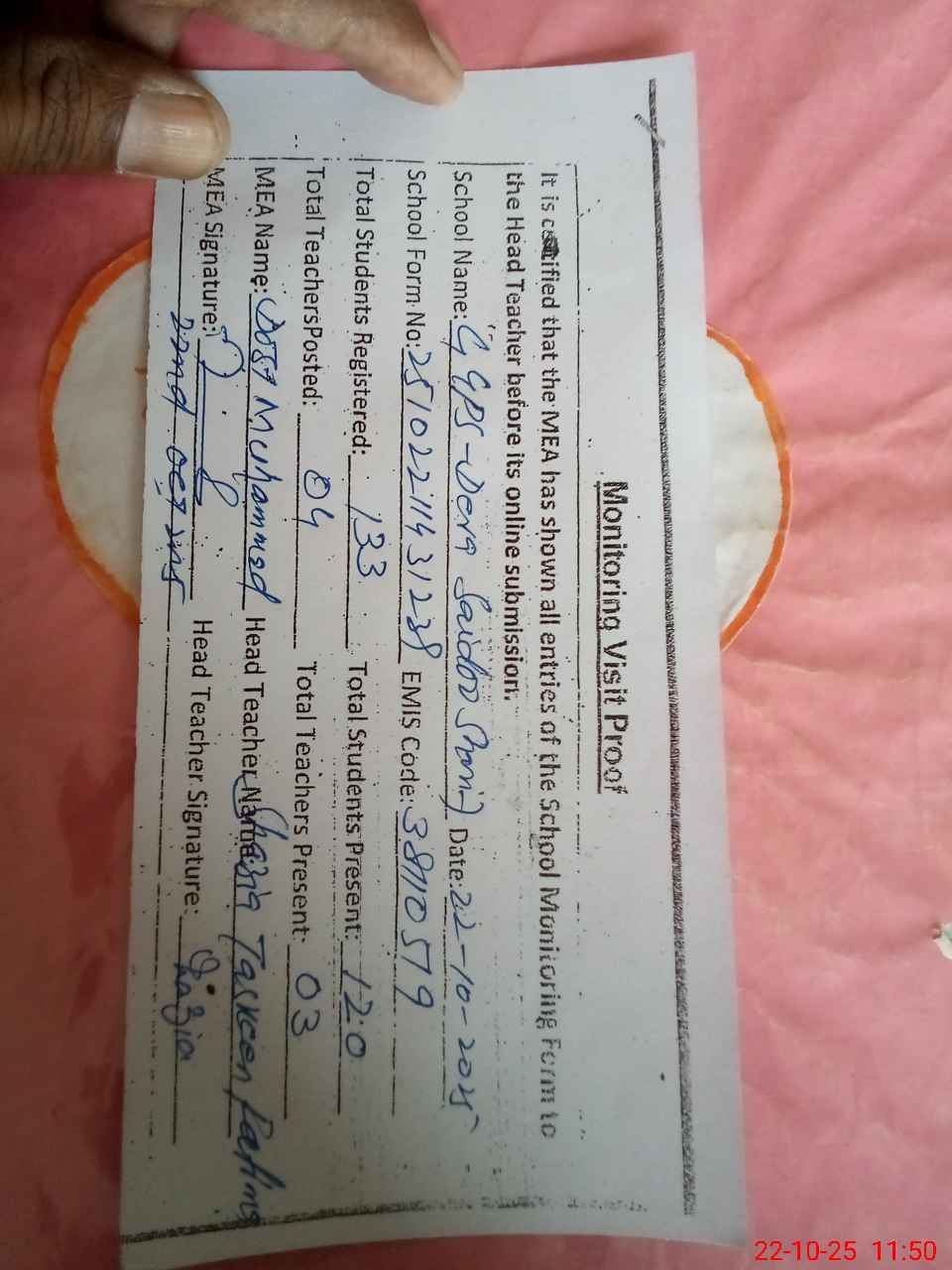 | EMIS Code: 38110519 | Name of School: GGPS DERA SAIDOO SHAH | |||