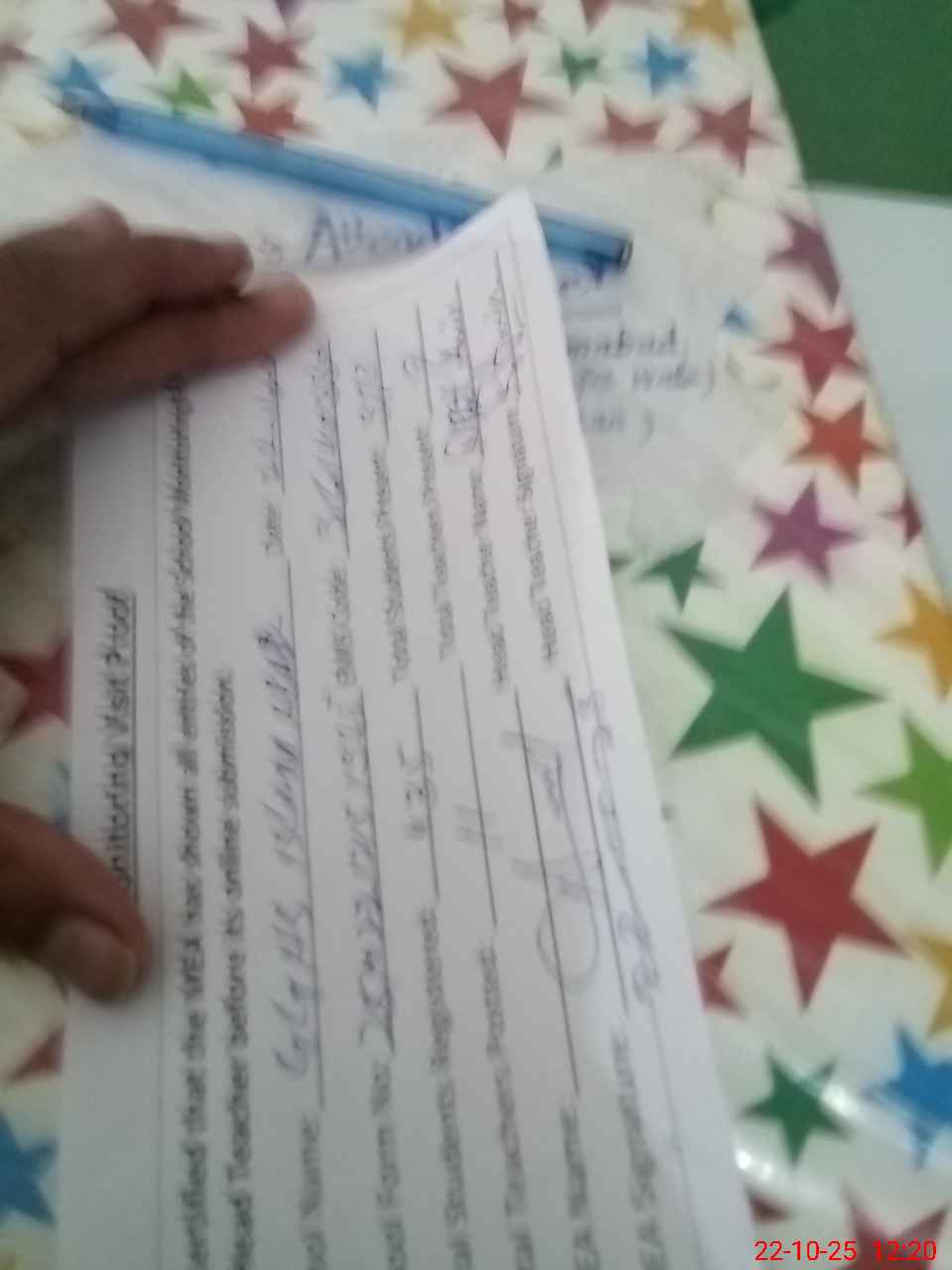 | Name: Ar**** No**** Designation: (School Headmaster's/Headmistress's) Headmistress Phone/Cell Number: 03**** |