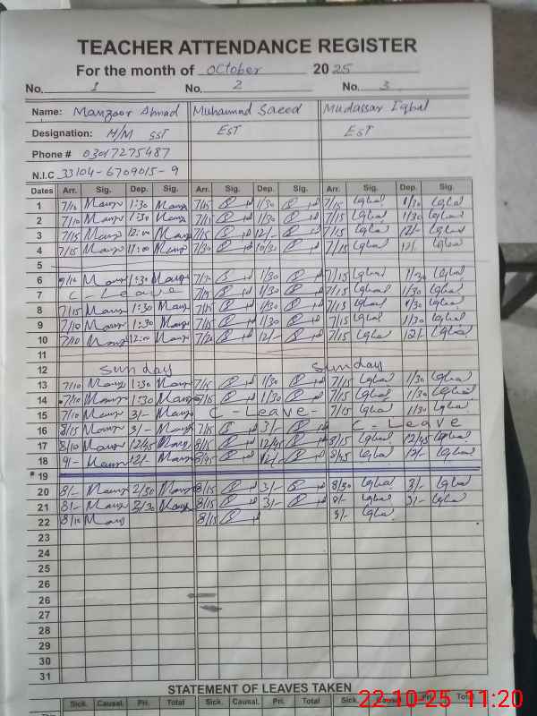 | Name: Ma**** Designation: (School Headmaster's/Headmistress's) SST Phone/Cell Number: 03**** |
