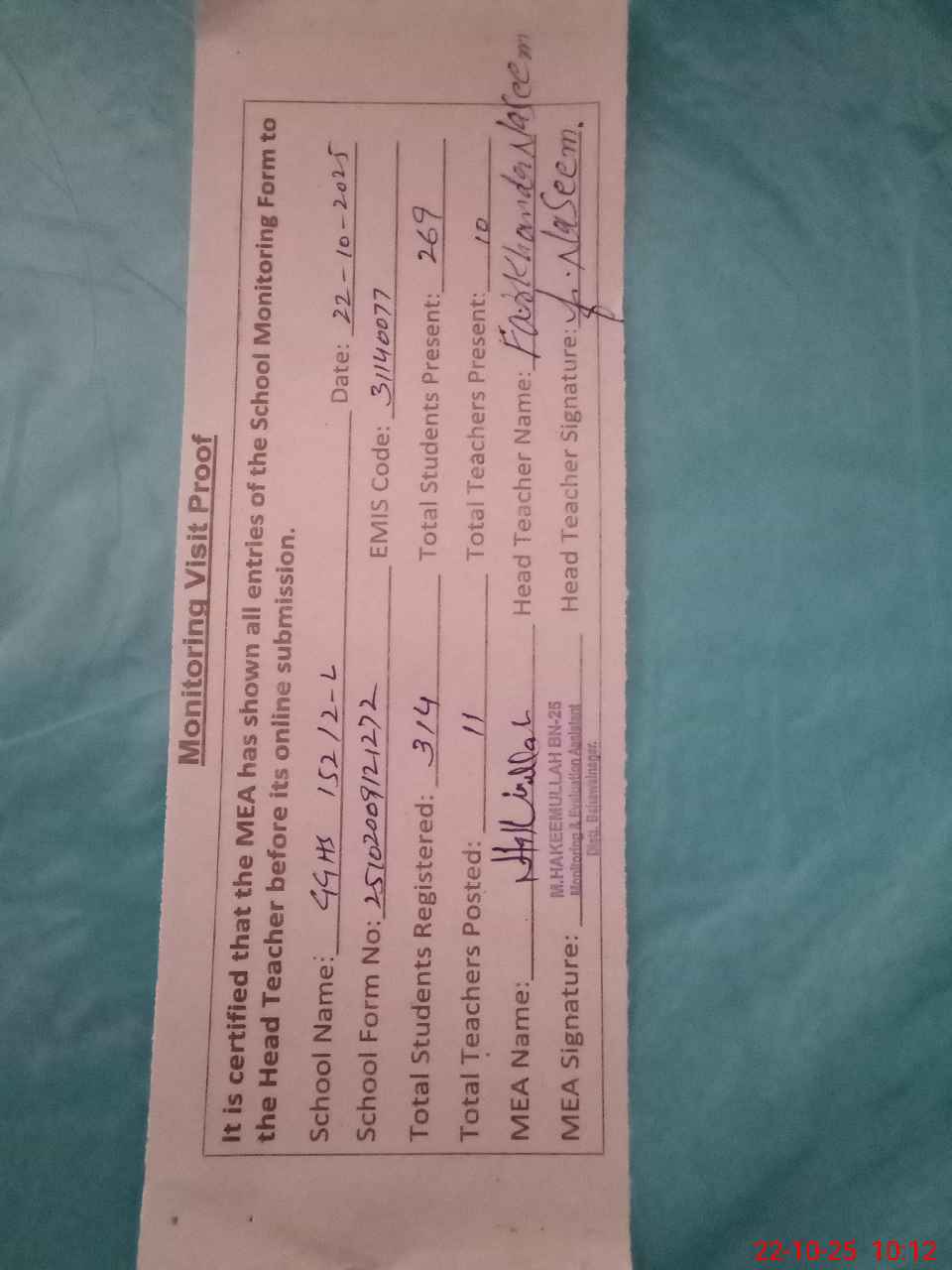 | EMIS Code: 31140077 | Name of School: GGHS CHAK NO. 152/2-L | |||
