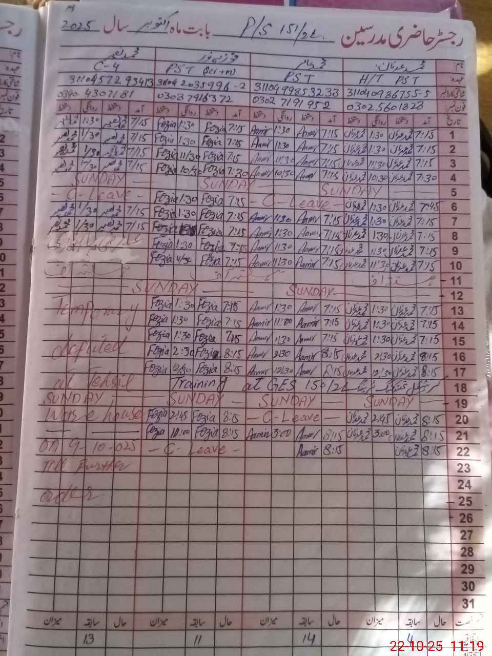 | 31**** | Al**** Ah**** | Contract | 0 | 0 | 30 | 0 | 0 | 0 | 0 | 0 | 0 | Absent (Un-Authorized) | |