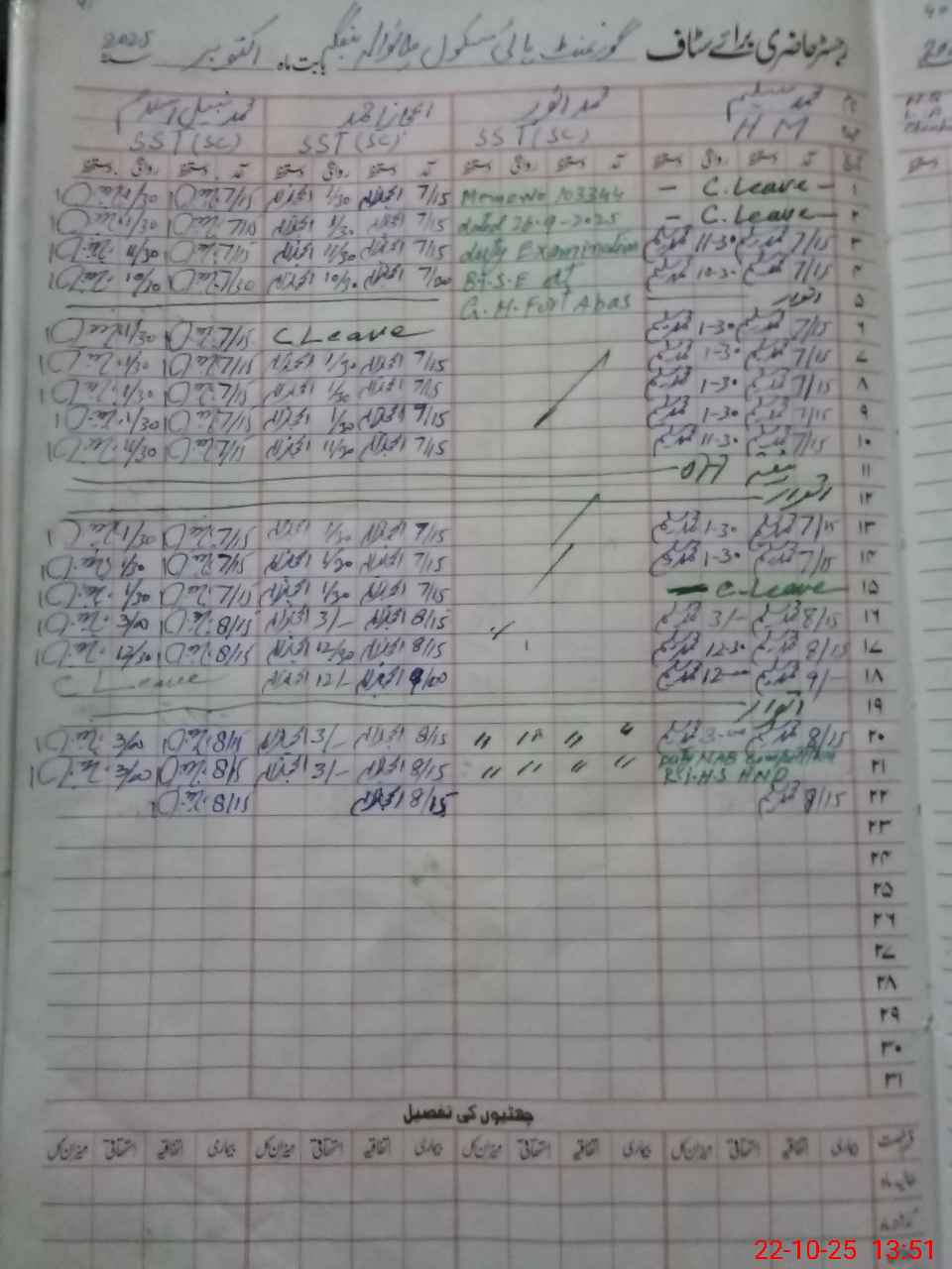 | CNIC | Full Name | Designation | R/C | Absence During Last Calender Month |