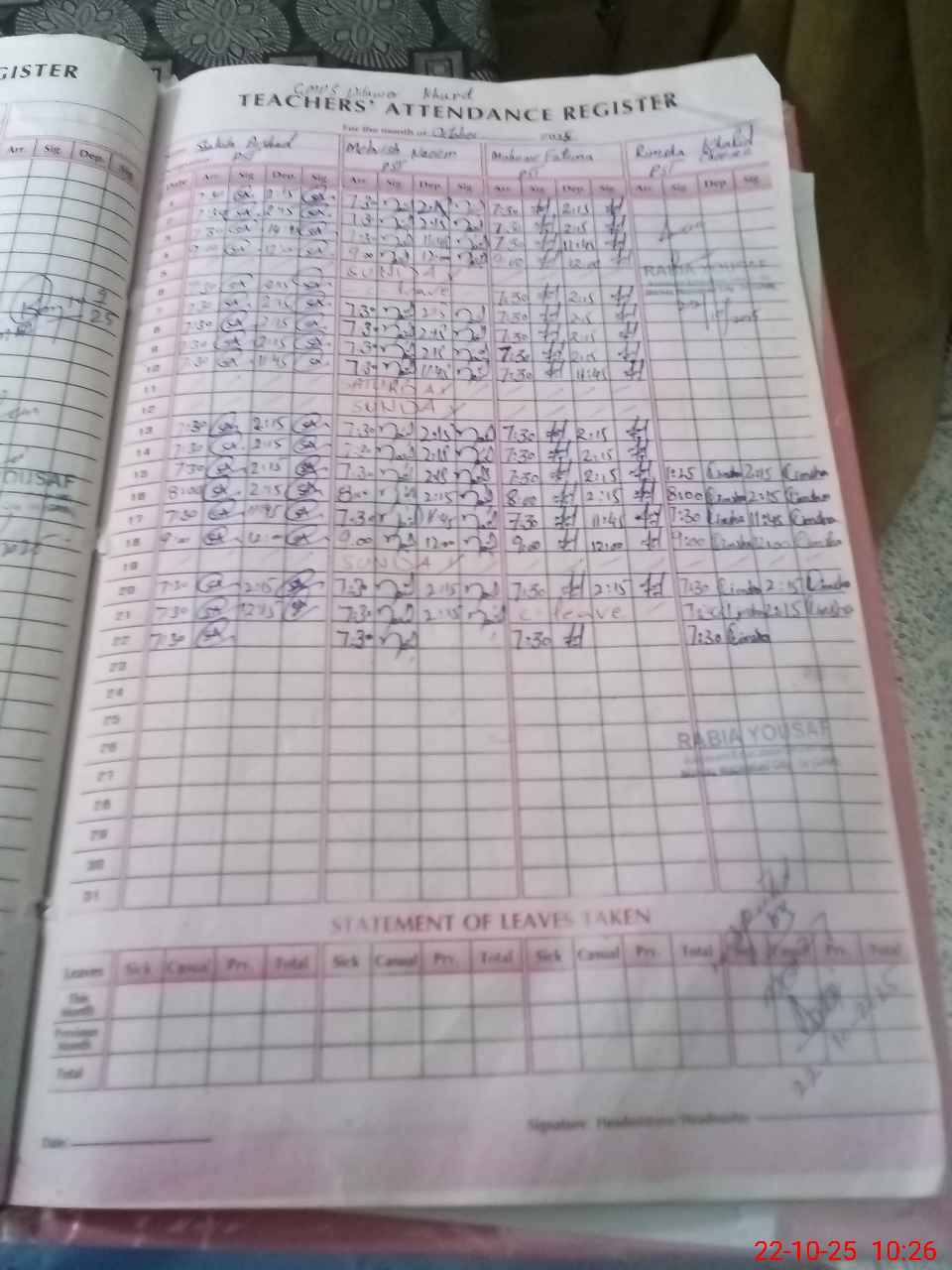 | Name: Sh**** Ir**** Designation: (School Headmaster's/Headmistress's) PST Phone/Cell Number: 03**** |