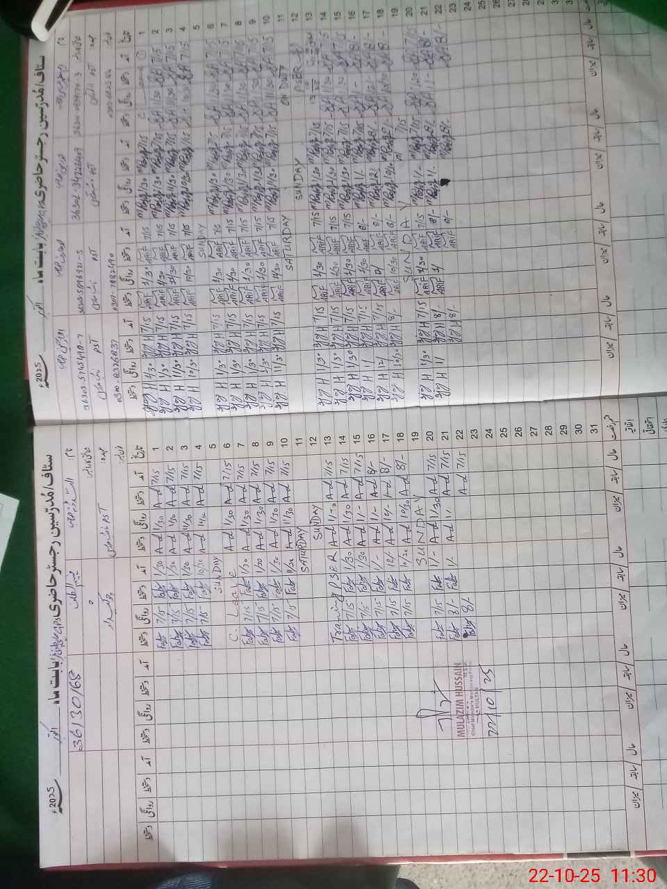 | CNIC | Full Name | Designation | R/C | Absence During Last Calender Month |