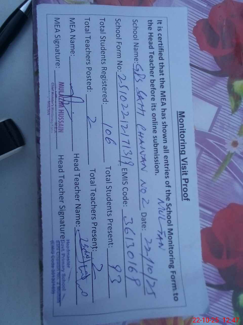 | EMIS Code: 36130169 | Name of School: GPS SAHI CHAWAN NO. 2 MUZA SAHI CHAWAN | |||