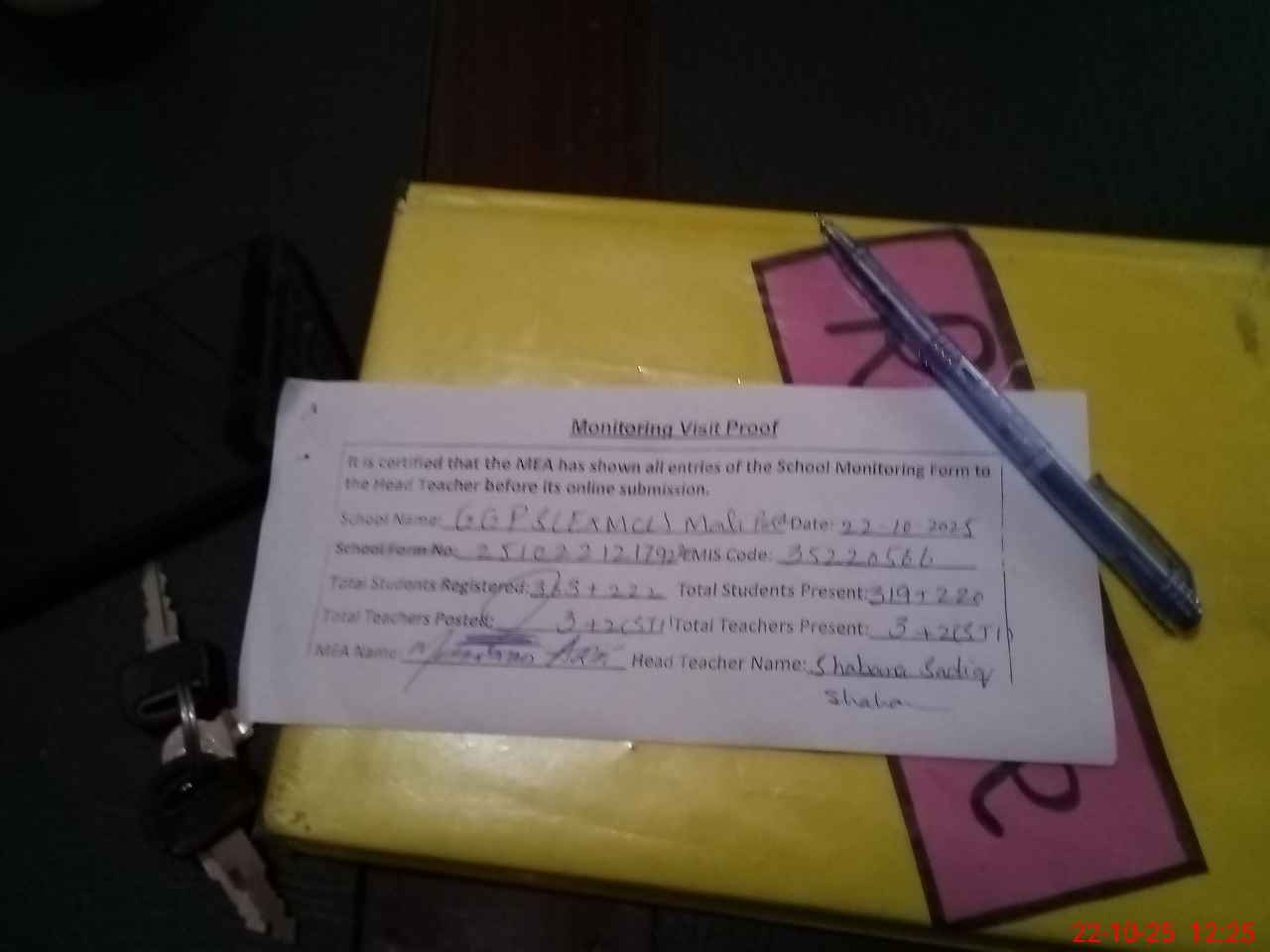 | Certified that this School was Inspected by the Undersigned MEA/DMO Today and the Information Stated Above is as Per Record. | |||||