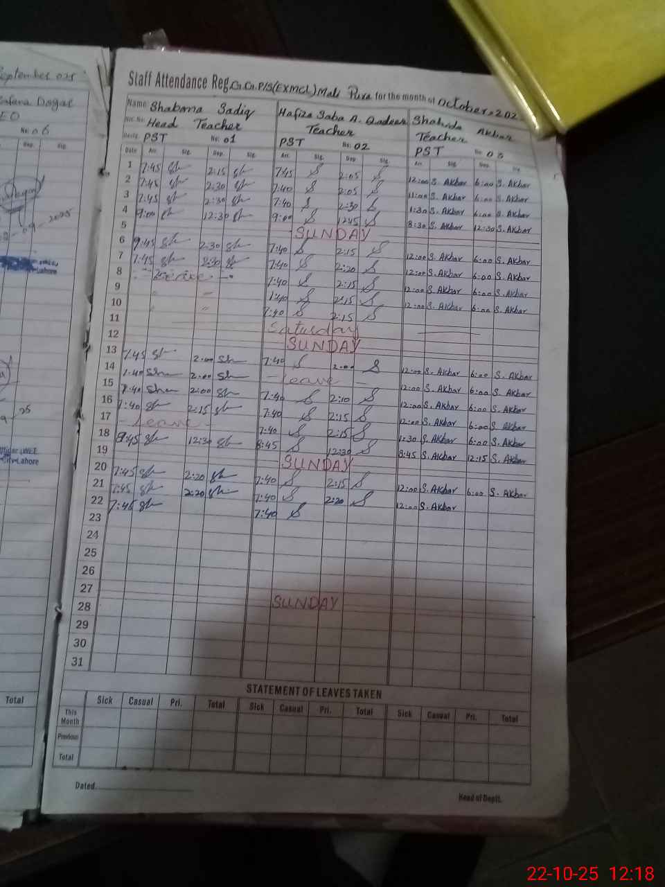 | Name: SH**** SA**** Designation: (School Headmaster's/Headmistress's) PST Phone/Cell Number: 03**** |