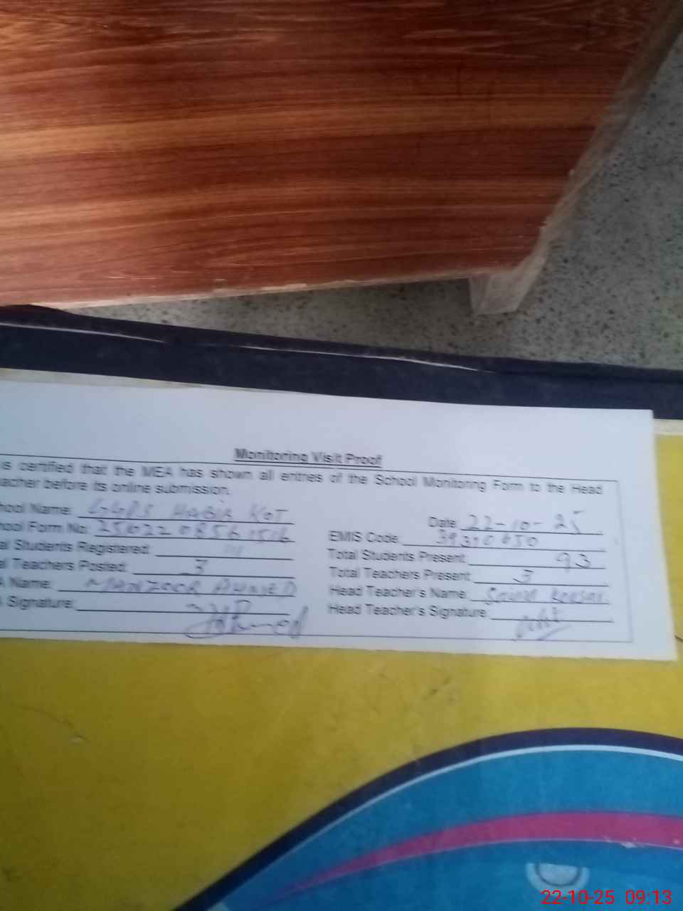 | Certified that this School was Inspected by the Undersigned MEA/DMO Today and the Information Stated Above is as Per Record. | |||||