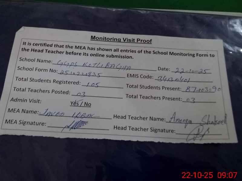 | EMIS Code: 34130401 | Name of School: GGPS KOTLI BAGGHA | |||