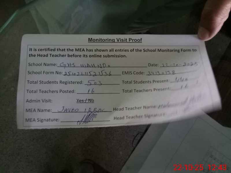| Attendance Register | Head Teacher | MEA with School | Visit Proof |