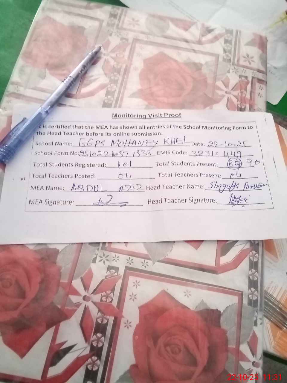 | EMIS Code: 38310449 | Name of School: GGPS MOHANEY KHEL | |||