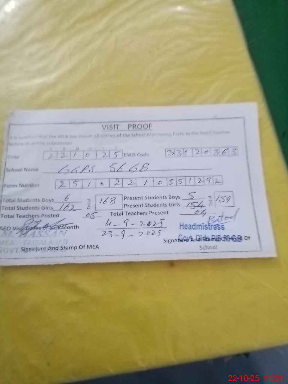 | EMIS Code: 33120363 | Name of School: GGPS CHAK 56 GB JARANWALA | |||