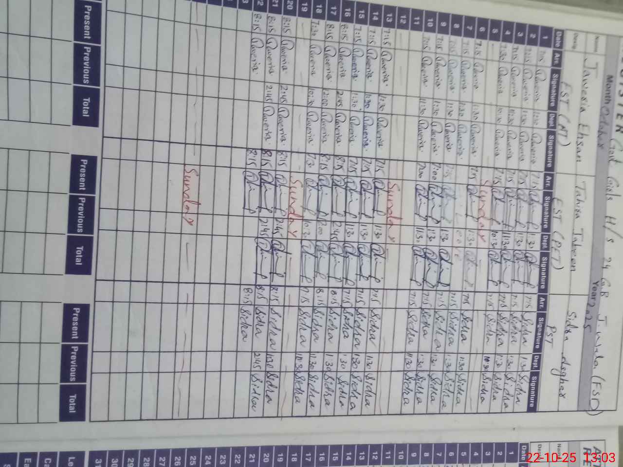 | CNIC | Full Name | Designation | R/C | Absence During Last Calender Month |
