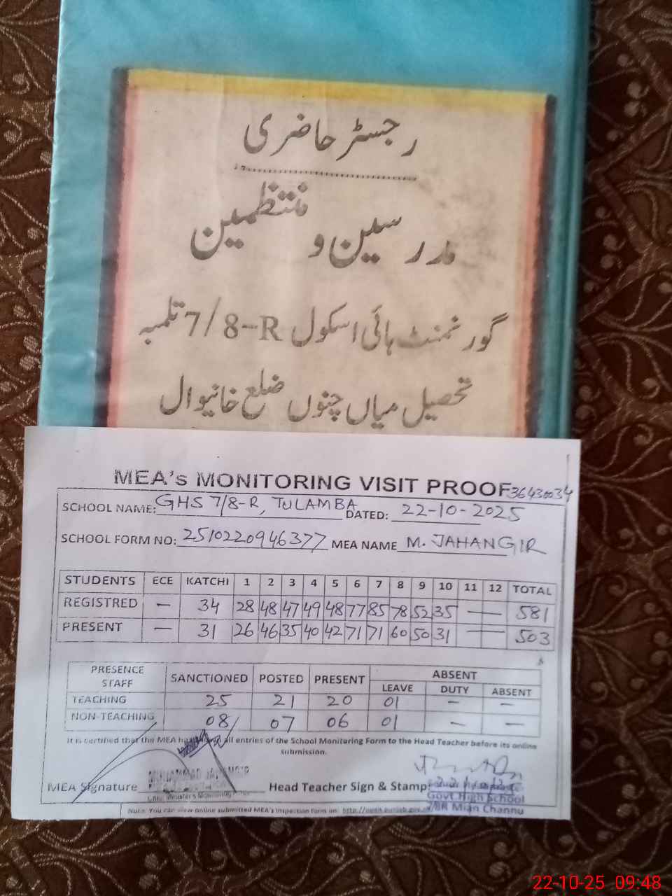 | EMIS Code: 36430034 | Name of School: GHS 7/8-R, TULAMBA | |||