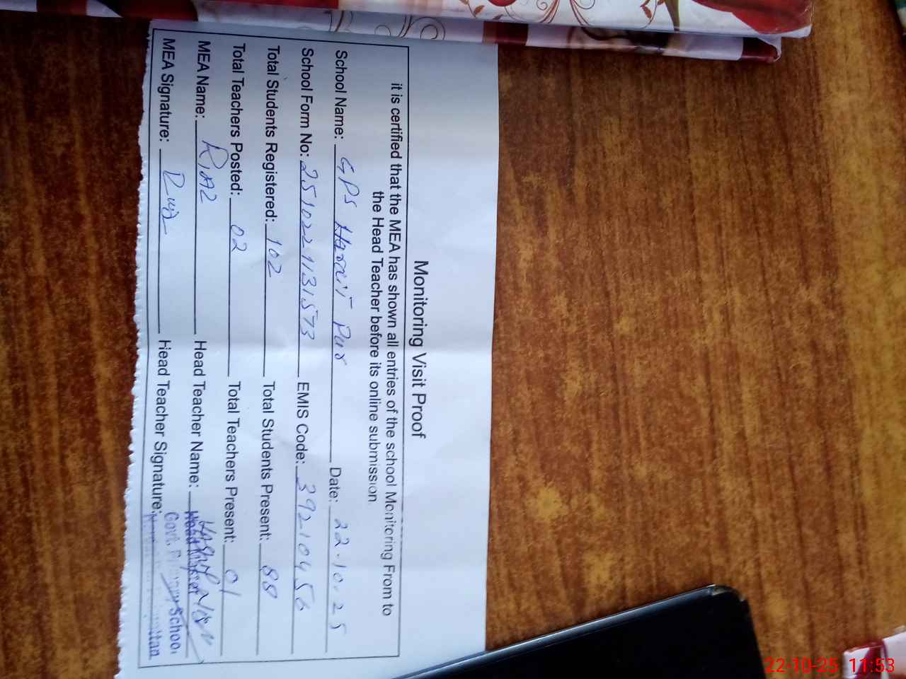 | EMIS Code: 39210456 | Name of School: GPS HARDIT PUR | |||