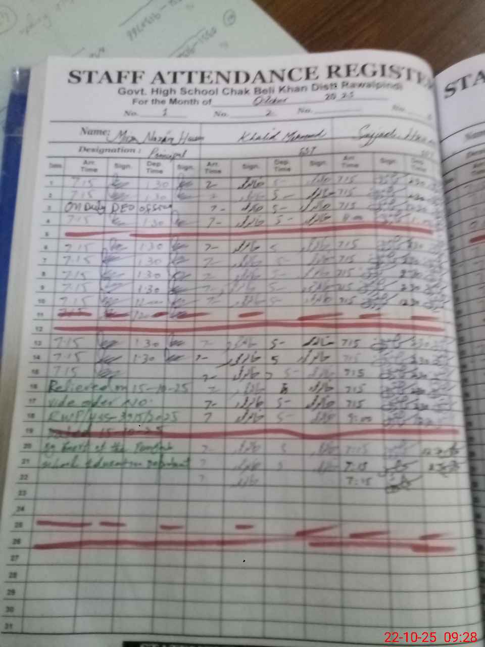 | CNIC | Full Name | Designation | R/C | Absence During Last Calender Month |