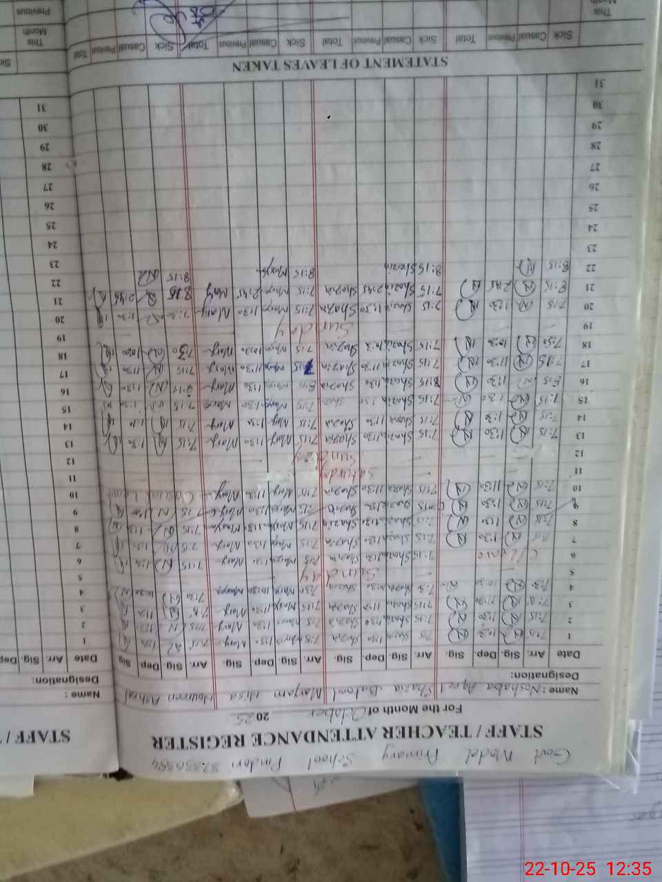 | CNIC | Full Name | Designation | R/C | Absence During Last Calender Month |