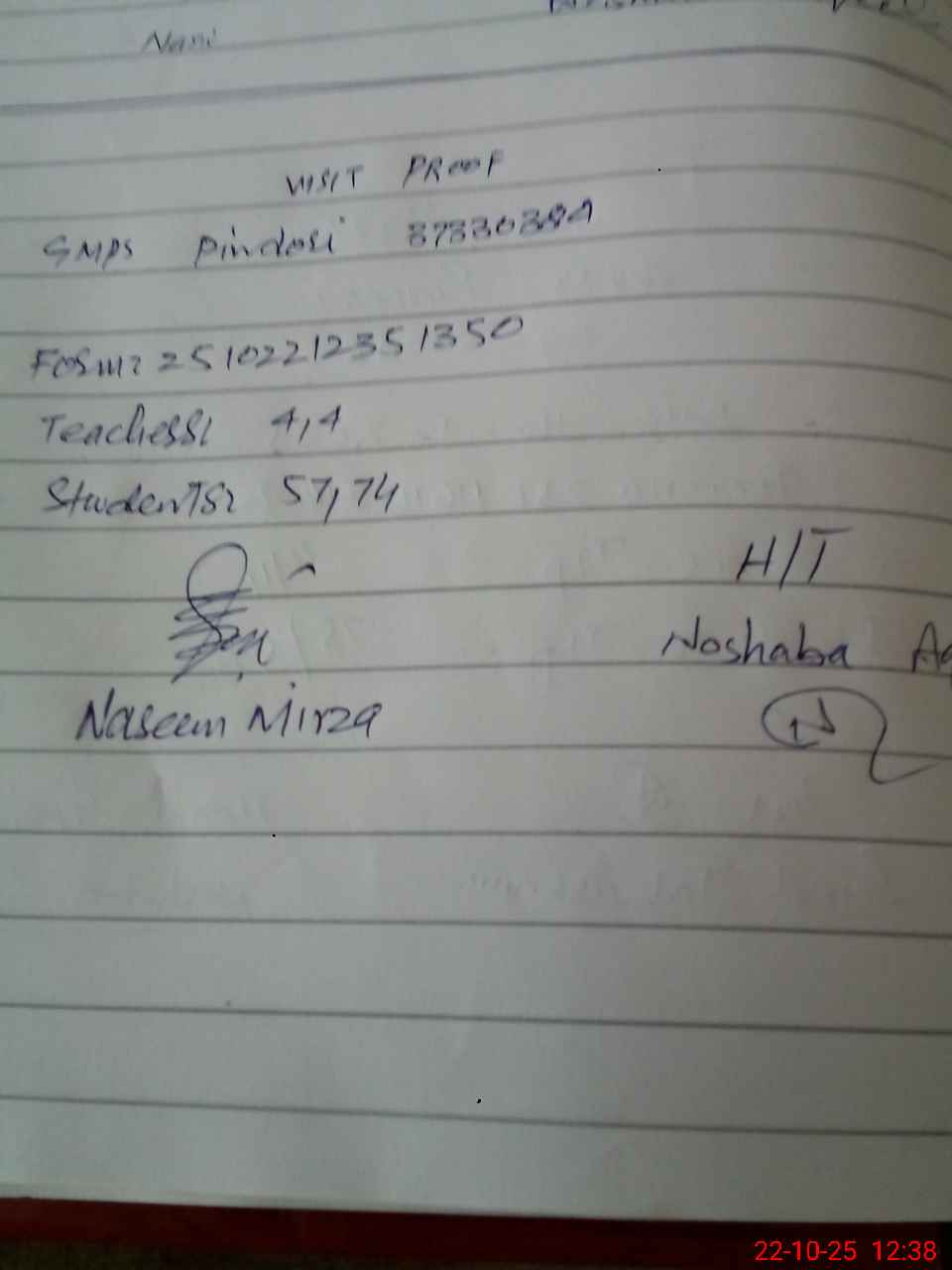 | Name: NO**** AQ**** Designation: (School Headmaster's/Headmistress's) PST Phone/Cell Number: 03**** |