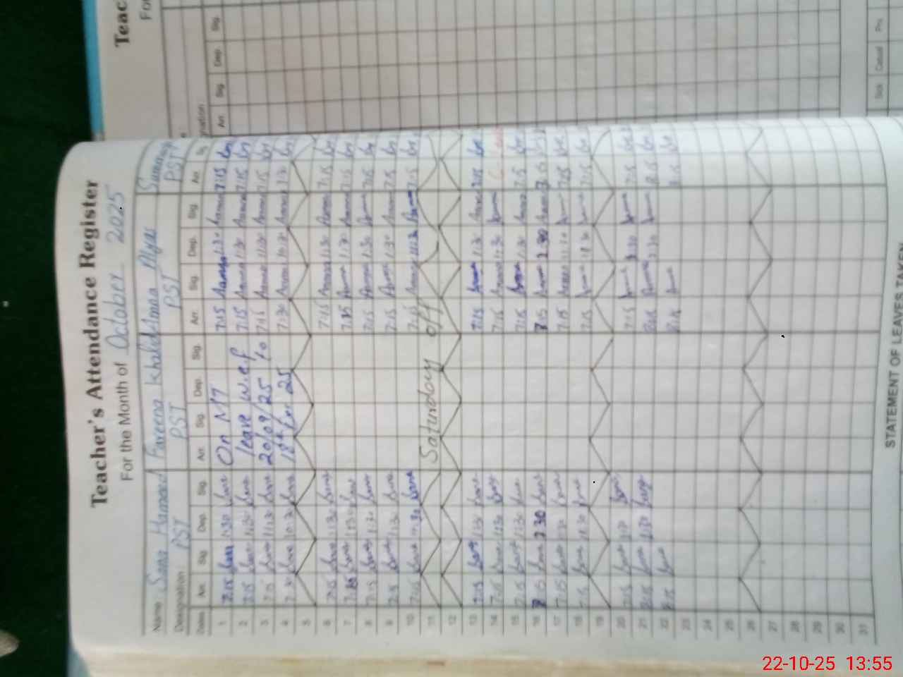| 61**** | Fa**** Kh**** | PST | Regular | 0 | 0 | 0 | 0 | 0 | 0 | 0 | 0 | 0 | Maternity |