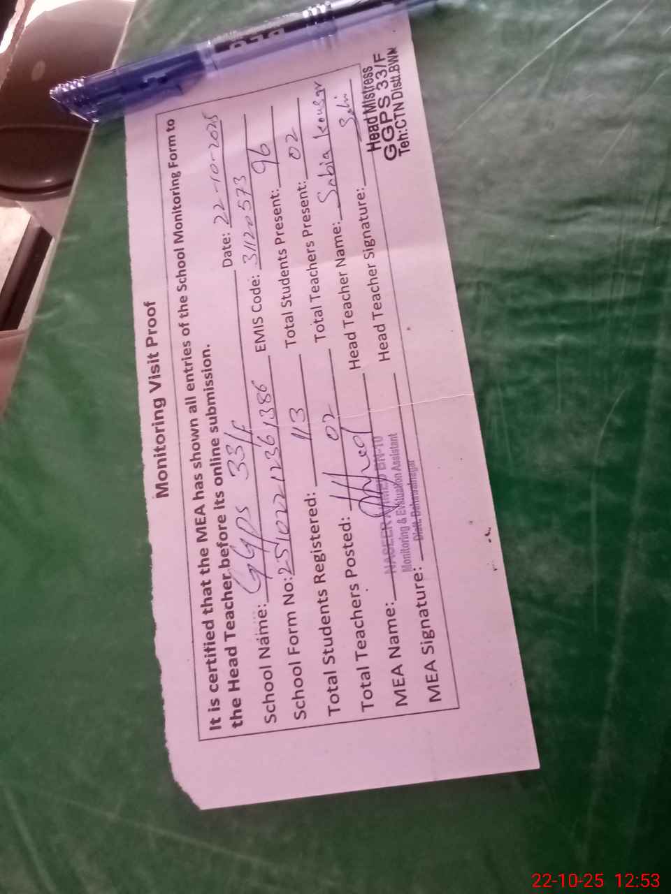 | EMIS Code: 31120573 | Name of School: GGPS CHAK NO. 33/F | |||