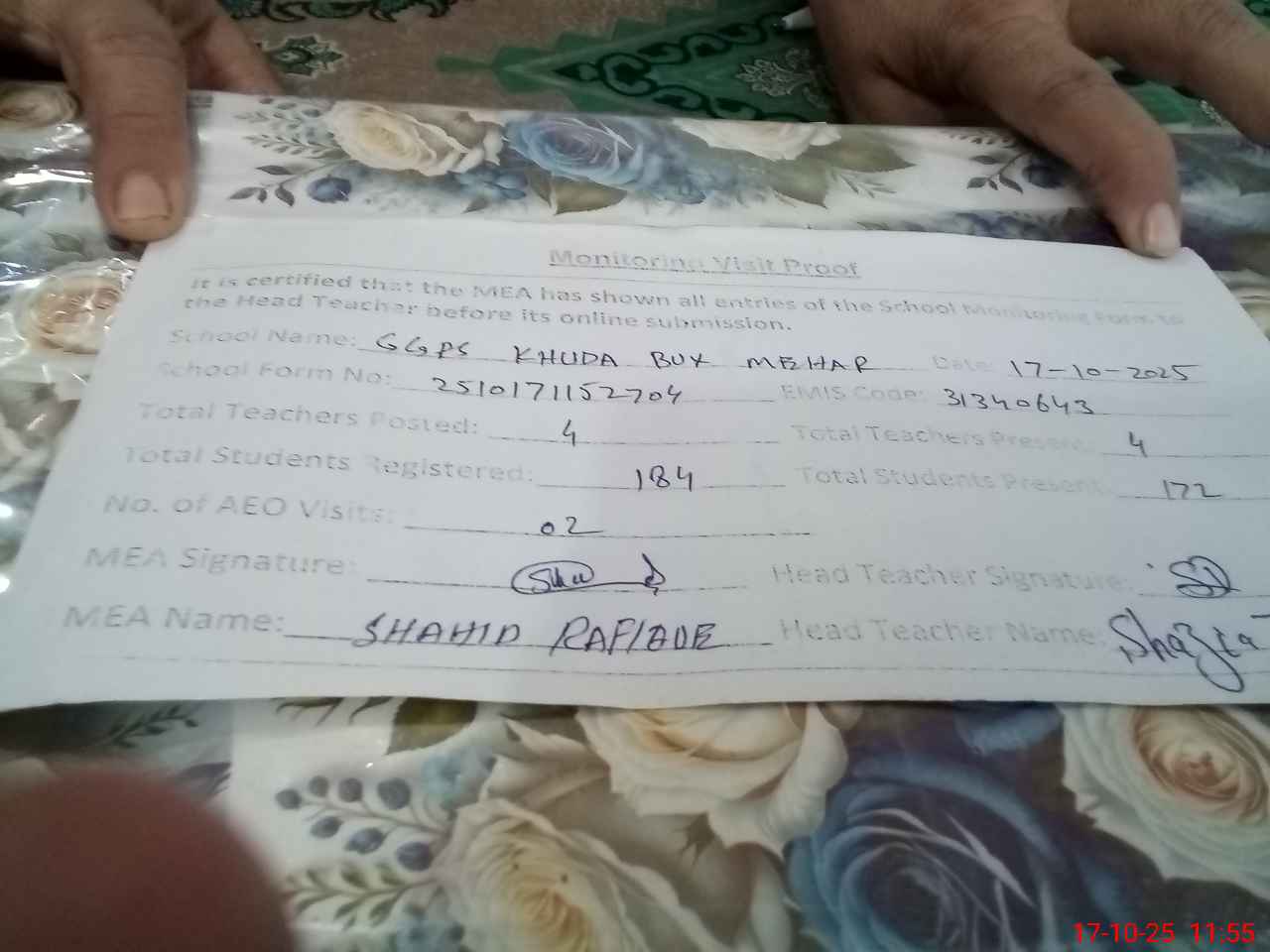 | EMIS Code: 31340643 | Name of School: GGPS KHUDA BUX MEHAR NO .2 | |||