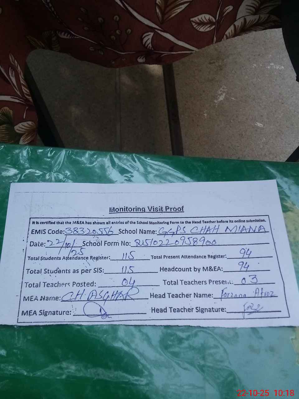 | EMIS Code: 38320556 | Name of School: GGPS CHAH MIANA | |||